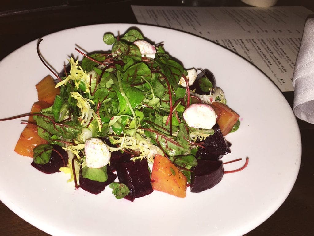 Enjoy a rainbow in every bite with Rainbow Beet Salad from Marvin on U Street, DC’s nightlife neighborhood. Ah, it sure is bright and happy a like a rainbow. What makes it better than a rainbow is that it will keep you from going hungry. It combines the nomnom flavors of both veggies and fruit with thick pieces of beetroot and peaches. Plus comes with a very light honey vinaigrette. Plus, for that extra flavor, it comes with large pieces of gooey soft goat cheese. Many different ingredients here, but they all light in flavor, so nothing overshadows the rest. A great dish for those who are looking to make healthy options when going out. The only thing it might not fill you up and makes it a bit of an expensive salad for $13. We ended up ordering a nice steak to balance out all those veggies and satisfy this hungry nomster.